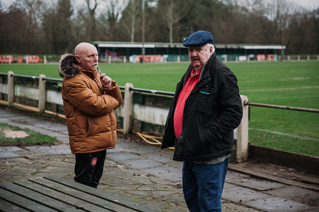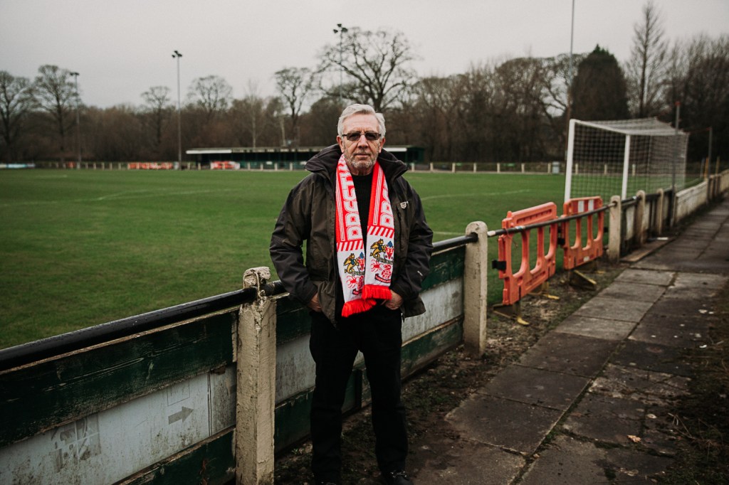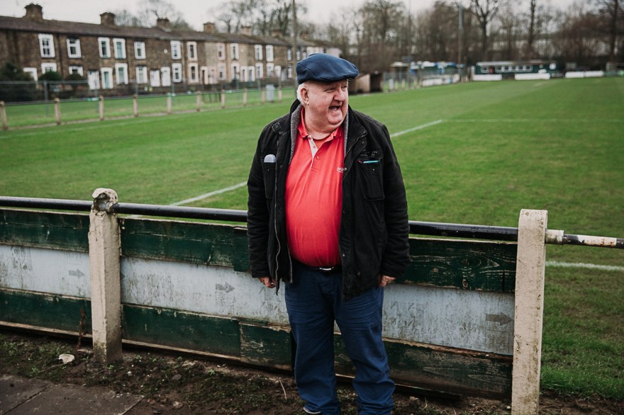 In researching the work of Stuart Roy Clarke and Haans Van Der Meer I was able to cultivate the beginnings of my project and found the work of Van Der Meer particularly enchanting with regards to the detail offered within his work in addition to the landscape element. The image below is where I have echoed his approach with results that I am relatively pleased with and definitely offer development within my work. In researching the approach of Van Der Meer I made the choice to take this photograph at a higher aperture with the intention of encapsulating further detail. The detail in the interaction of players shaking hands in type of ‘face off’ whilst the houses in the background get to bear witness the the duel about to unfold. The chimney in the background and the type of stone helps tell me that this place is Lancashire, ‘The North’. Although i’m from the North. These people are more northern than me. Szarkowski (1966:10) further resonated with a broader approach “There is in fact no such thing as an instantaneous photograph. All photographs are exposures of shorter or longer duration, and each describes a discreet parcel of time. This time is always the present.” The relevance here to my own work relate to the decisions that I made of when to take the photograph in addition to the technical choices I made to capture. I had taken this photograph several times before the match had started and felt that I had captured the shot. It wasn’t until I reflected on my choice that I decided to position myself at this side of the pitch for the start of the match. I was unaware or forgot that a ceremonial hand shake between the teams took place before the game however I found myself witnessing a moment in time which wouldn’t be repeated until the next game.