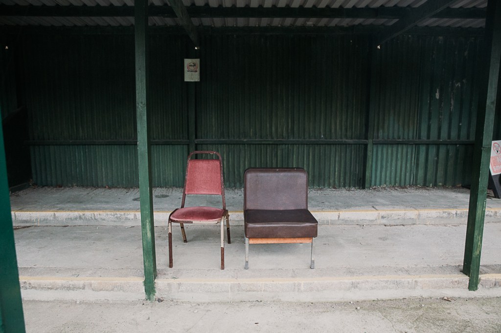 When considering my project and the potential direction I was going I begun to feel frustrated about my inability to access a higher level of sophistication and unable to produce work that I aspired to create. I reacted to this by furthering a philosophical approach and engaged with academic texts. Ritchin (2013:48) shed some light on this burden “A photograph that strives to provide a single answer intimates its own manipulation: one that provokes questions, whether intentionally or not, better allows the viewer to engage with the subject and become, in a sense, the photographer’s collaborator in his or her enquiry.” With the ideas of Ritchin in mind I traveled to my next shoot with the idea of creating work that that was less of a photographic document and more of an inquiry into unanswered questions. The idea of seeing the invisible was in my consciousness and has some relevance to Lister (2013: 5) who argues “Photography appears to be everywhere and nowhere simultaneously”. Both of these ideas hold relevance to me and from my last shooting experience, I made a decision to try to notice the environment around specifically think about the ‘easily missed’ objects and architecture. The image below illustrates an engagement with these ideas. Although not the most revealing photograph I have ever taken, the seats made me consider unanswerable questions such as who was the last person to use them? How did the small object on one of the seats come to be there? who had left the object? All questions that I would never find an answer however, being aware of the surroundings and the people who attended the football match. I was able to recognise and fantasise about who it might have been. In raising these questions, the photograph became less banal. Franklin (2012: 169) offers a conclusion of which I identify with by stating “The staying power and force of these strategies of measured ambiguity in photography owe much to the psychological and emotional way in which images communicate : further research and a deeper understanding” . As a result of my shoot which I was relatively happy with I find myself looking at this photograph the most. Checking again to see if it had changed which I find rather odd.