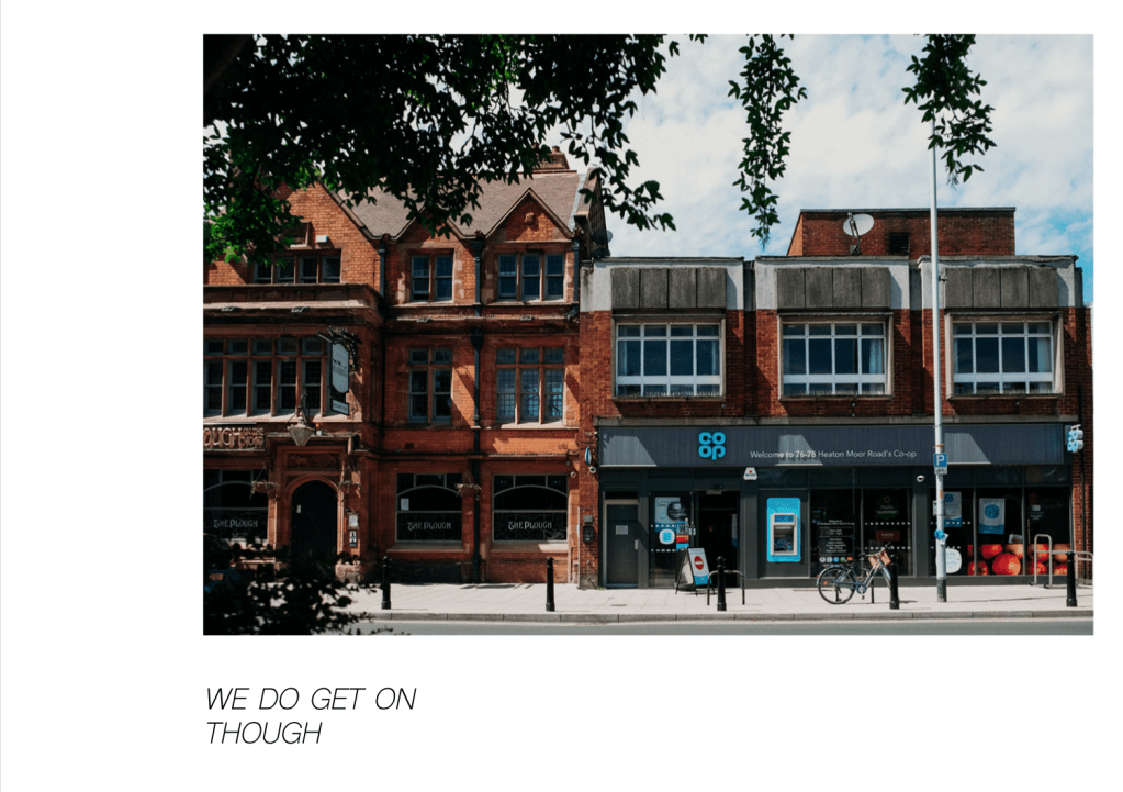 The captions serve to anchor the local nature of this mini project and may alienate those from outside of the local area. This could be interesting as the two giant Manchester football clubs are very much recognised as global brands throughout the world. However this project could be seen as a local response to their presence.