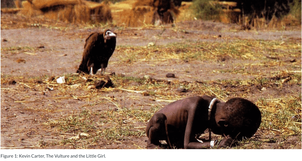 Going back to the Levi Strauss quote, the impact of this image is furthered because it was taken by an African photographer/photojournalist. I have a basic knowledge of the type of work Carter engaged with as part of ‘The Bang Bang Club’ and it is this knowledge which provides enough objectivity to arrive at the conclusion that I believe his intentions.