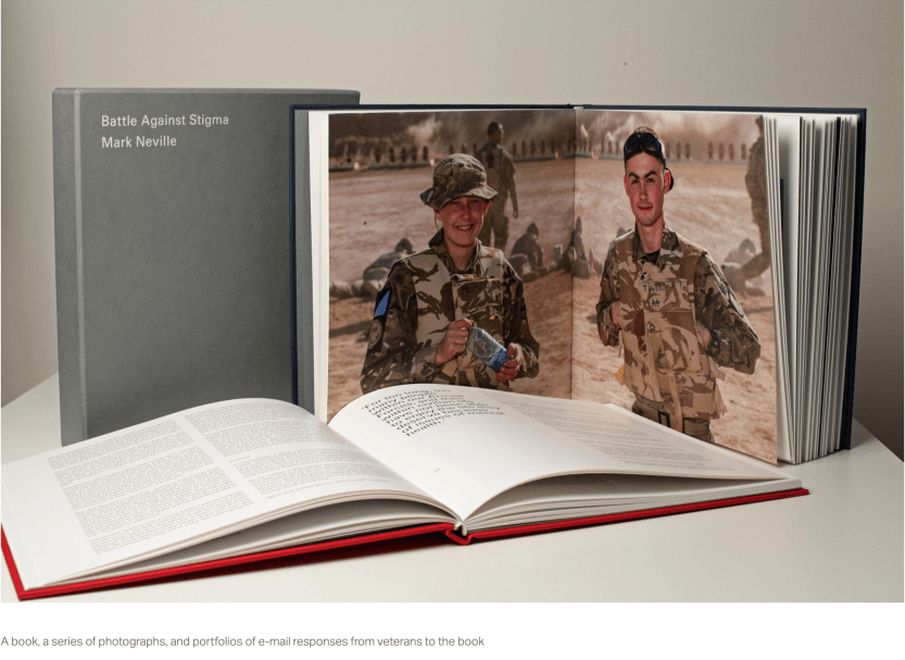 ‘The first volume is the re-telling, including his photographs, of Neville’s own personal experience when he was sent out to Helmand in 2011 as an official war artist and his troubled return, and the second volume is made-up of the written testimonies about PTSD and adjustment disorder from serving and ex-serving soldiers.’