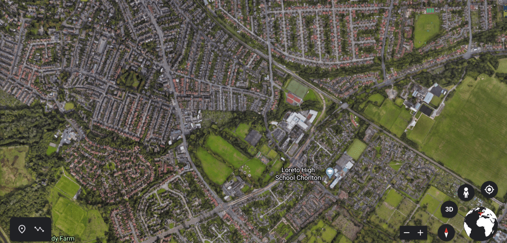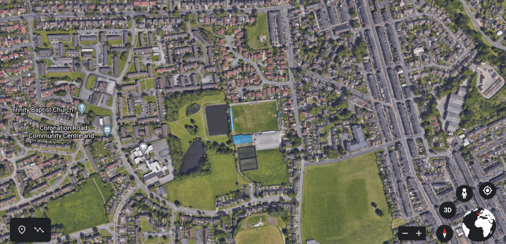 I used Google Earth to explore the surrounding areas and communities of the football grounds I have visited. I felt that the images may be interesting and provide visual clues regarding the infrastructure of these places. Saying something about their importance, their local industries etc.  However by the time I had found the 5th image, the landscapes started to become familiar and slightly banal.