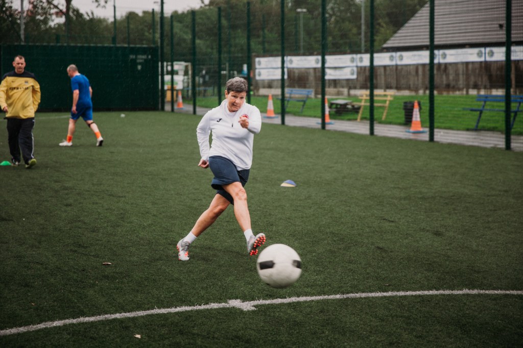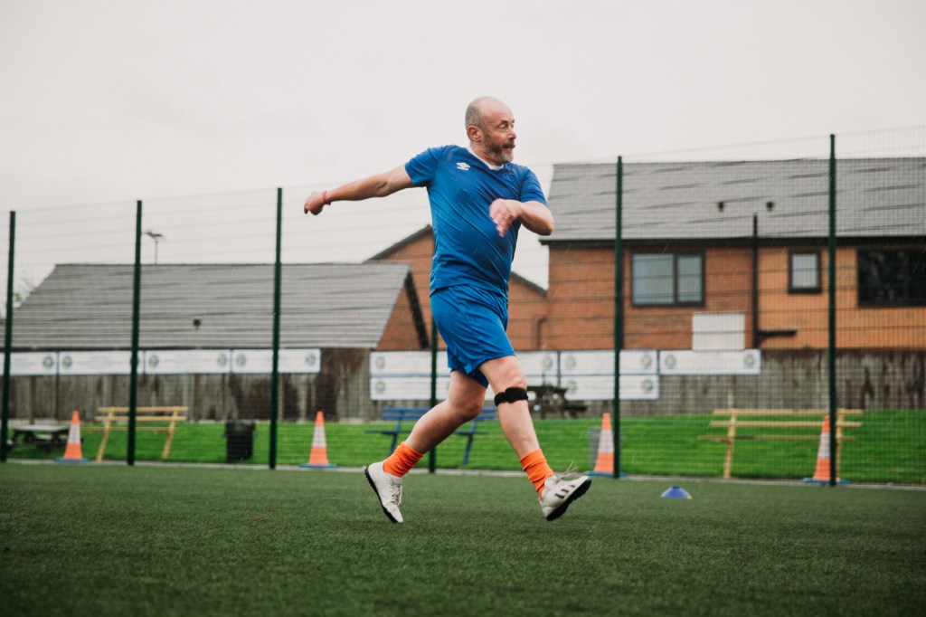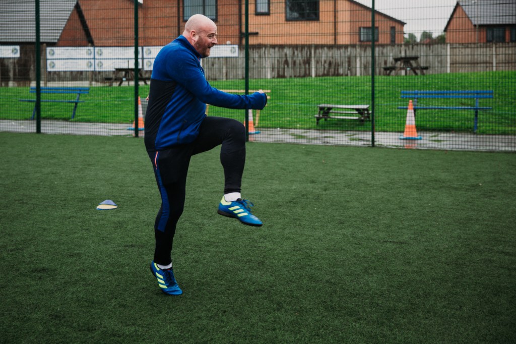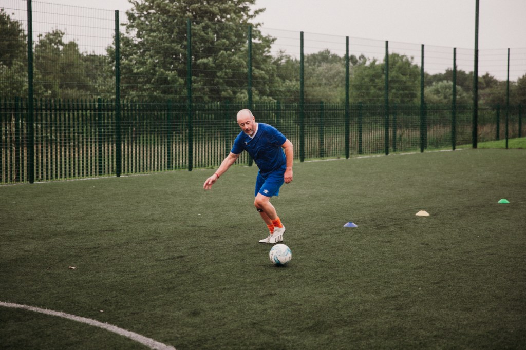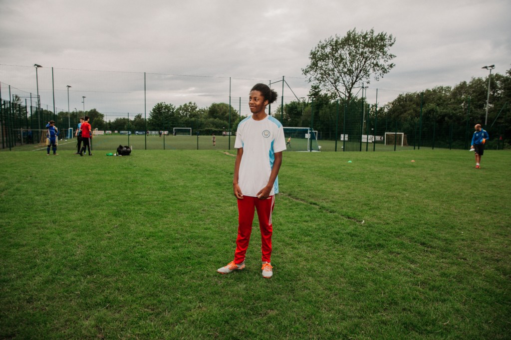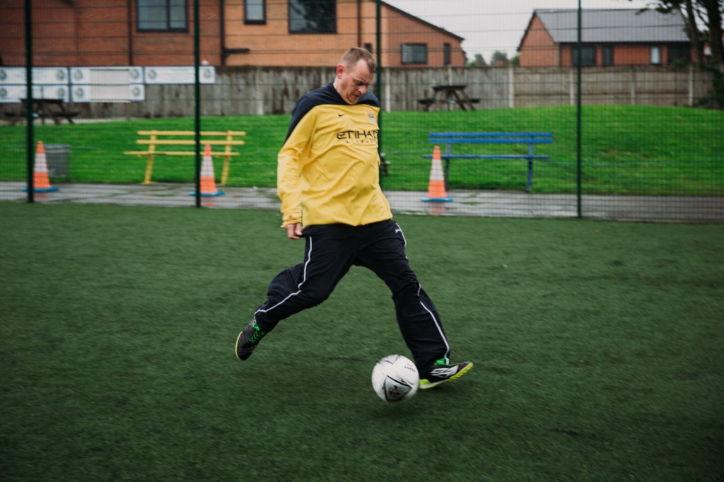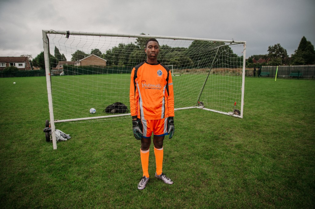 Due to the current situation and having become interested in a socially engaged approach, my previous idea surrounding Stockport County felt too ambitious at this time. I did revisit the club to complete the rephotography task which produced interesting results. I decided to concentrate my efforts on a local grassroots football club that I am already familiar with. This was useful as I was granted full access and essentially a free reign to produce work. I didn’t really have much of a philosophy to start with. However it soon emerged that building on my portrait work would be a relevant direction. Only this time, adjusting my approach by introducing a flash to fill in shadows on the face, shooting at sunset to make use of a richer light source in addition to encompassing the full body from a vantage point which is further back.