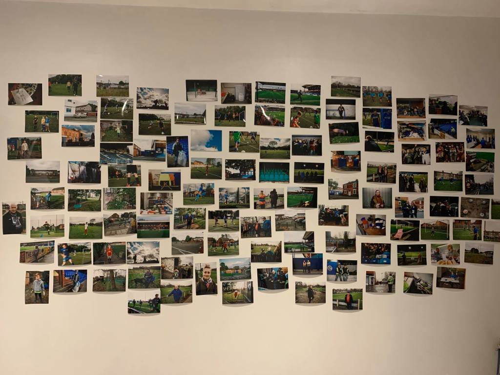 In preparation for the Landings exhibition, I had printed around 100 photographs with the intention of sequencing them for the exhibition. I did this with a loose metaphor of the relationship with my dad in mind although it was a long way from being finished. My attentions however, needed to focus on the exhibition. In support of this I had organised a space at the football club to create an exhibition which presented the difficulty of fusing my current progress which is of a personal nature, with the expectations of an audience at the football club who were anticipating seeing work of a more objective nature. Therefore my exhibition encompassed work mainly focussing on the football club and portraits and documentary work I had produced. At present, the feedback on the exhibition has been good and resulted in an open budget to fill the space with my work. All expenses being met by the club with further interest from the local council in addition to the county football association wanting to speak to me regarding the project.