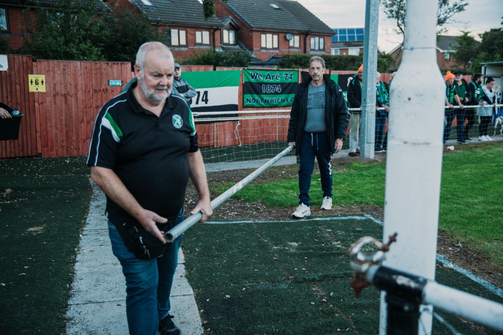 In order to address issues I am currently reflecting on my initial motivations and the starting point of my non league football project. Having played non league football for many years throughout my teens and 20s, I have already visited many of the places I photograph. This leads to the consideration of why I make the decision to revisit these places? In many instances I have thought about this question and tried to provide some overly clever and academic response, photography as activism, exploring a type of grief for the passing of my father, both of which may substance to an extent although probably not the core of my concerns. Read (2017) cites O’keeffe ‘As a curator I am looking for what is at the core of the work. Powered by authentic concerns of the photographer.’ Throughout my playing experience one of the most exciting elements was travelling to different locations, simply being in different environments, walking through the gates and into a different changing rooms, kit bag over my shoulder and wearing my club tracksuit. Warming up before the game, as a goalkeeper I used to like looking at the style of nets, intrigued by the dilapidated advertising boards that probably haven’t been changed in years.